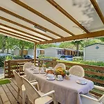 A fully-fitted kitchen is equipped with tea and coffee-making facilities, as well as a microwave oven, a fridge, and kitchenware for self-catering purposes. Guests can try French dishes in the restaurant L'Atoll, located about a 5-minute stroll away. Well-connected to many sights, this accommodation is a mere 350 metres from Mediterranee bus station. Bicycles can be rented at this campsite, while there are also a tennis court and an aqua park. A terrace is available on site, and canoeing, hiking, and mini golf can be enjoyed within proximity of the villa.